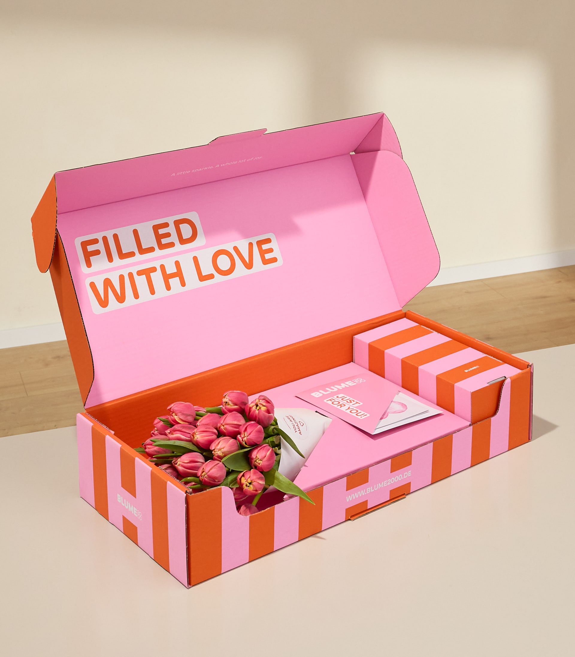 Geliefert wird der Strauß in einer exklusiven, stilvollen Geschenkbox. Der nachhaltige, FSC-zertifizierte Karton schützt die Blumen auf ihrem Weg und macht das Öffnen zu einem besonderen Moment voller Freude.